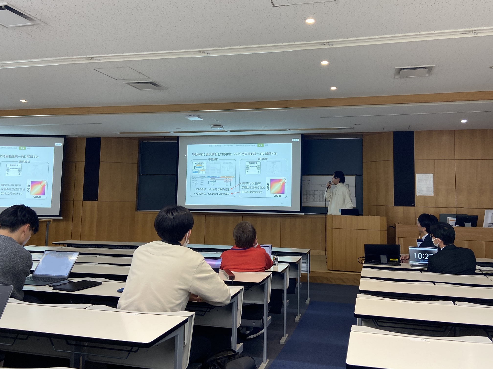 人工知能科学研究科M2の院生を対象とした「修士論文・研究報告書 審査会」が1月23日~24日の2日間、2つの教室で並行して行われました。